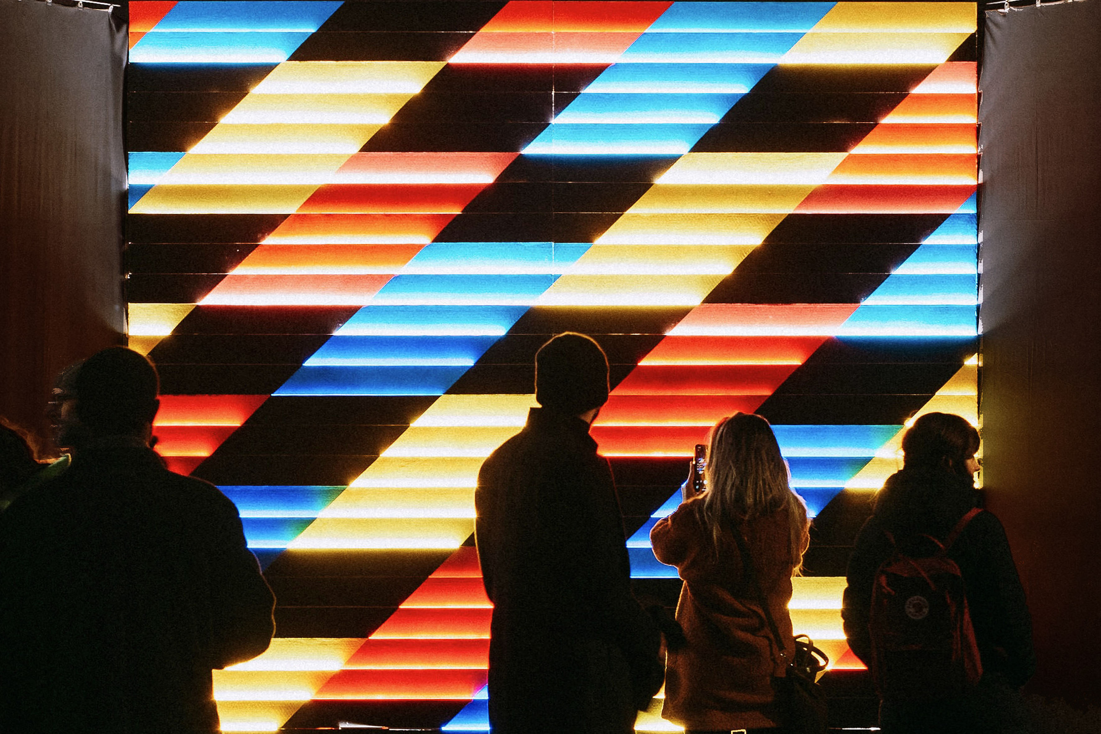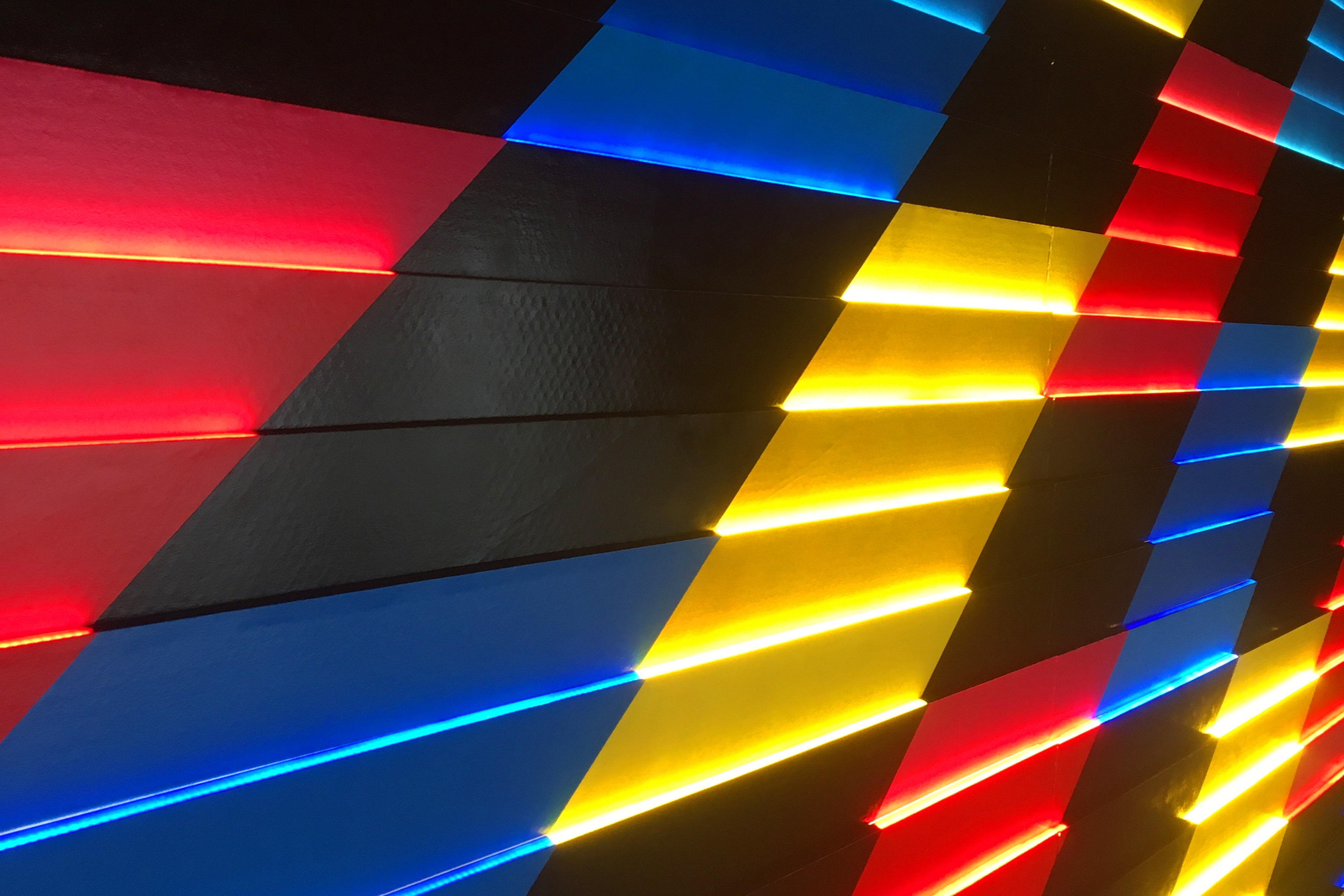 ‘Frames IV’ is a 4x4m light installation conceived for the Offllum Festival in the Poblenou neighbourhood, in Barcelona, consisting of a self-illuminated mural by LED strips. The luminaire reproduces a programmed sequence of continuous movement in line with the directionality of abstract design. A frame is the minimum unit, in the form of a static image, into which a video sequence can be broken down. And these, when projected sequentially, give a sensation of movement. The piece composes a sequence, a series of elements that succeed each other and are related to each other, reflecting on the dilemma between individual and community, and how the two elements come together according to the interaction in a social environment such as the city.