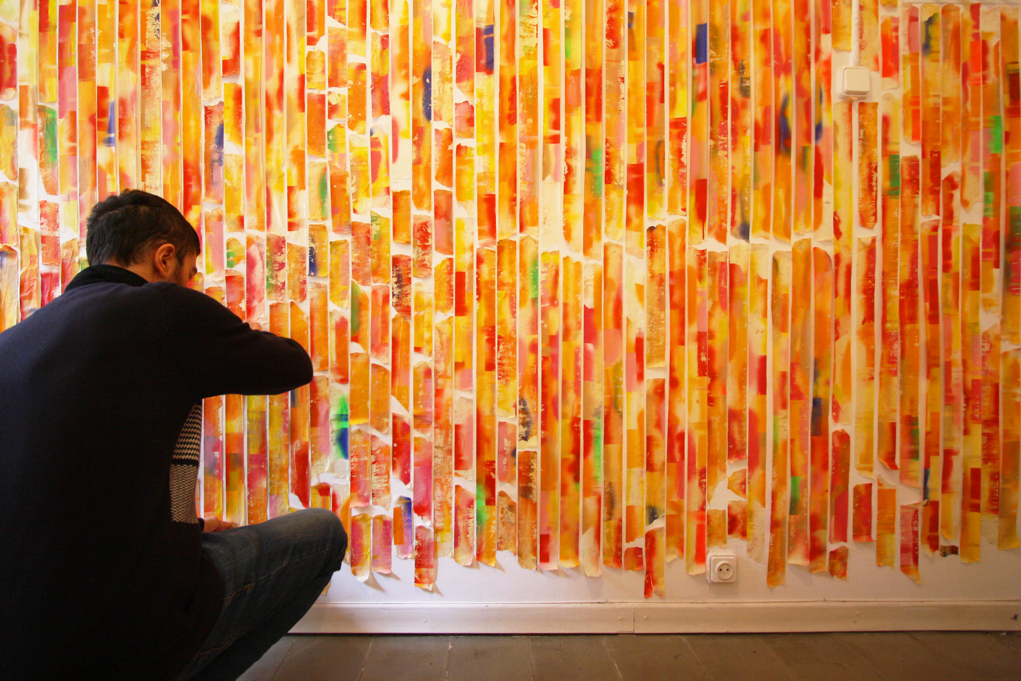 ‘Estrats’ (Strata, in catalan) is the name for a solo exhibition that takes place in the Casino de Vic from 13.06.25 to 20.09.25, in the city of Vic (Barcelona). A creative process of the artist is shown, based on previous works and new recent creations experimenting with reused paper adhesive tape. An exercise in (post)painting, where we can admire the nuances of the randomness of the pigment, the rigor of the technique, the delicacy of the gesture, and the wear produced by the passage of time.